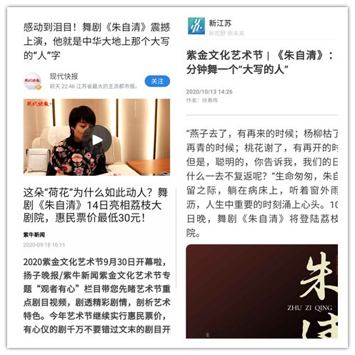 央視三套《中國文藝報道》時長2分43秒深度聚焦:100分鐘的舞劇《朱自清》將先生的愛國情懷展現的淋漓盡致;三段雙人舞層層遞進,將本劇情感推向高潮;中國舞蹈家協(xié)會主席、本作編劇馮雙白講述創(chuàng)作初心;領銜主演周晨淺談排練體會。